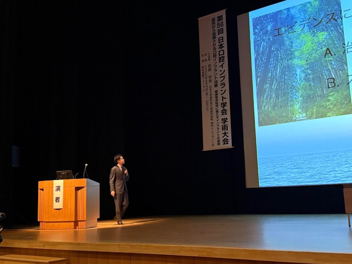 同じ九大出身の山根晃一先生とご一緒できました。このステージには、10年以上前に同じ口腔インプラント学会の若手セッションで登ったことがあり、見える景色には感慨深いものがありました。